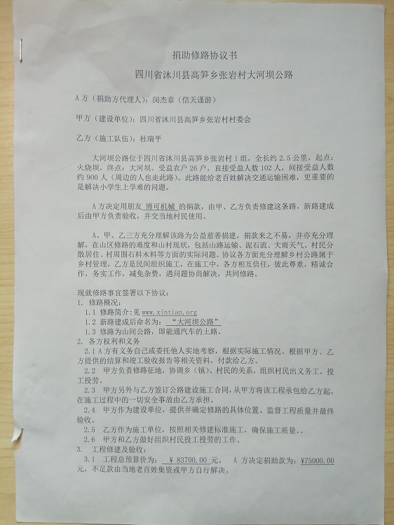 捐助修路协议书