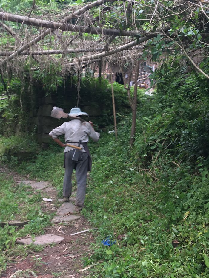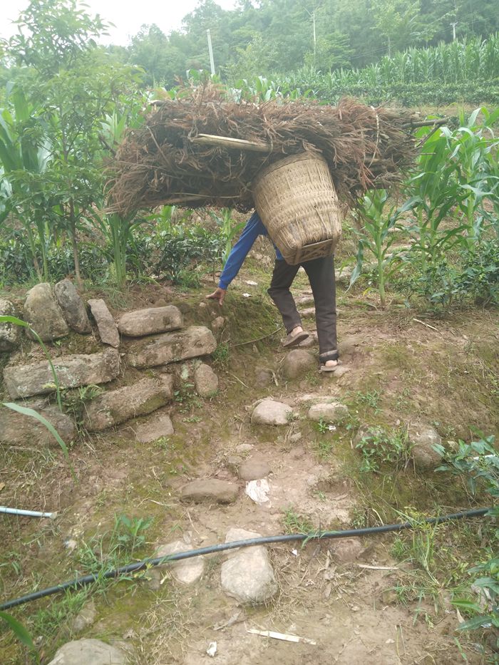 不通公路,村民劳动靠肩扛背驮。
