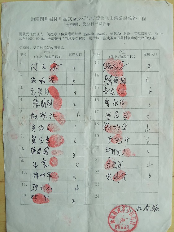 受益群众签字单