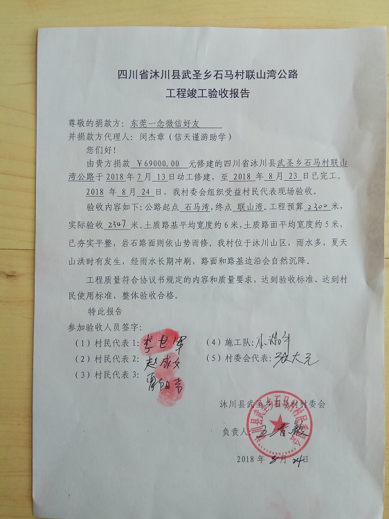(1)爱心人捐款、村民投工投劳一起修土路,干季可以通车;