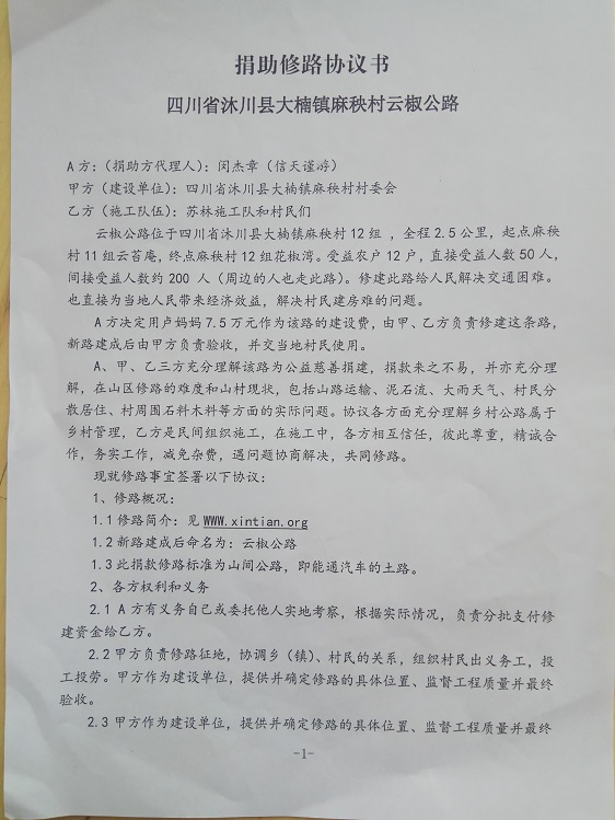 捐助修路协议书