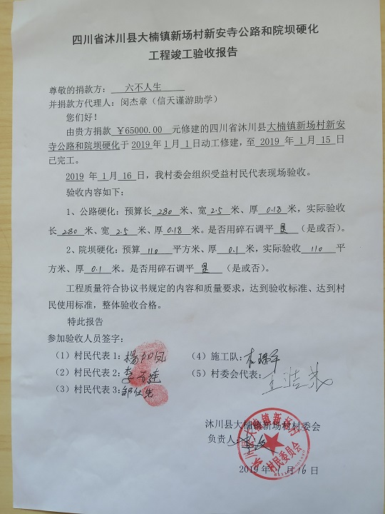 标题: 第217条:四川省大楠镇新场村新安寺公路和院坝硬化(六不人生)