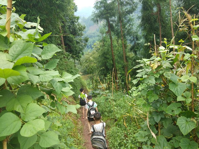 小学生上学之路,等修好了路之后,就可以坐拖拉机、面包车上学了,或者骑自行车上学了。