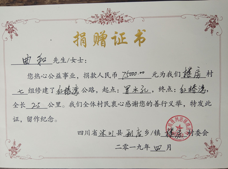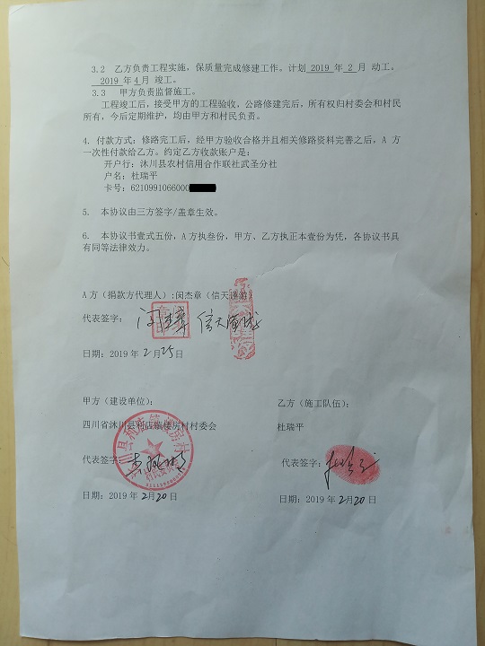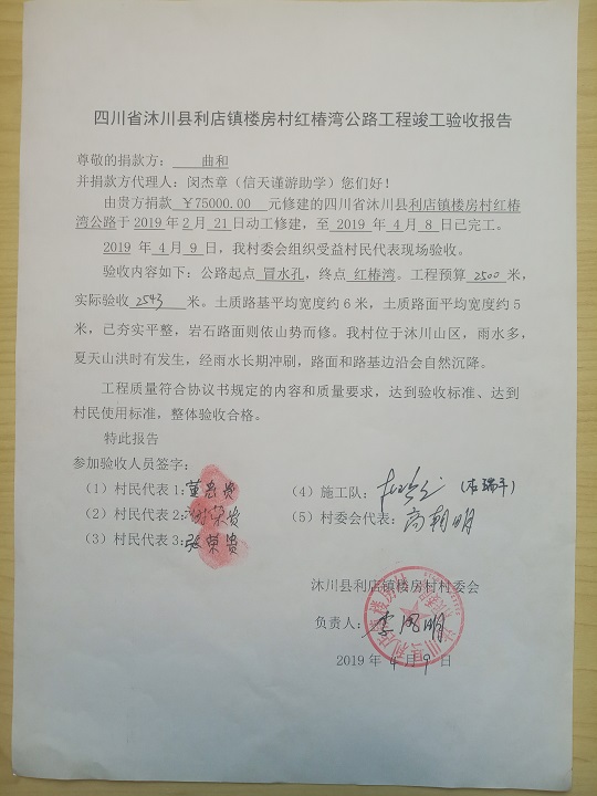 (1)爱心人捐款、村民投工投劳一起修土路,干季可以通车;