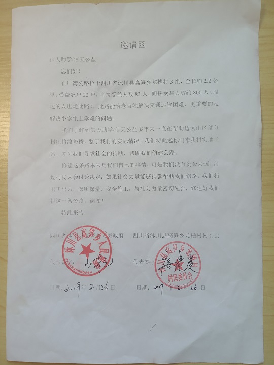 (1)爱心人捐款、村民投工投劳一起修土路,干季可以通车;