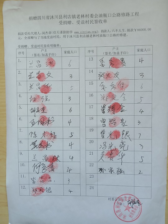 受益村民签字单