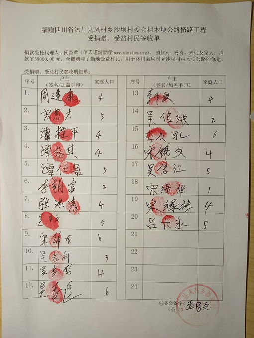 受益村民签字单