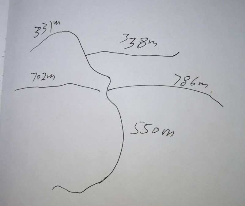 2、特别说明:整条路除右上通往兰产湾段约338米外,其余路段岩层较高、较坚硬、较陡峭,都需要破碎,坡度大的地方还需破碎降坡,施工难度特别大,预计破碎费用6万元(根据岩层的坚硬程度来估价,由村民集资)。