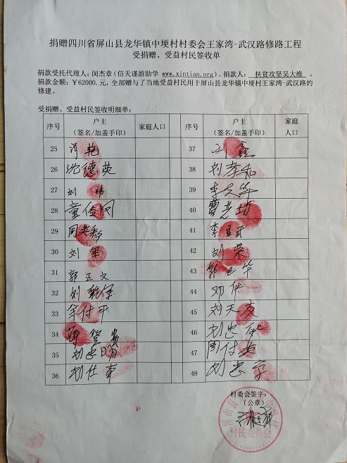 受益村民签字单