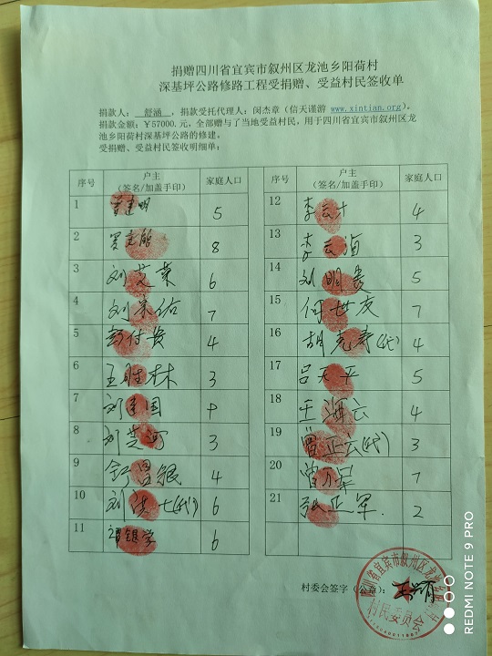 受益村民签字单