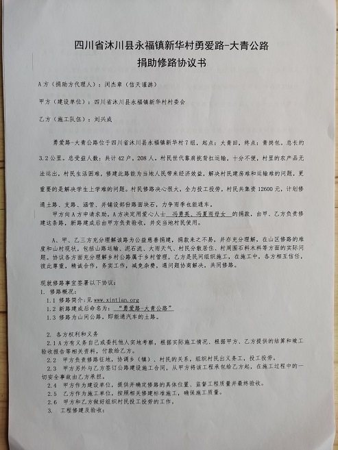 (5)修路预算分好几部分,有挖掘机、涵管、炸药爆破(山崖需要爆破)、堡坎、村民义务工、征地等。修路,我们不全包,我们出一大部分钱:挖掘费用、山崖爆破等。村民出义务工、涵管、征地费、村民小额集资。
