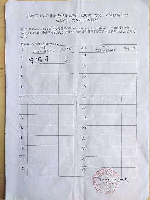 受益村民签字单