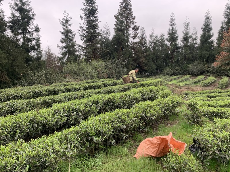 茶园,村民在采茶。