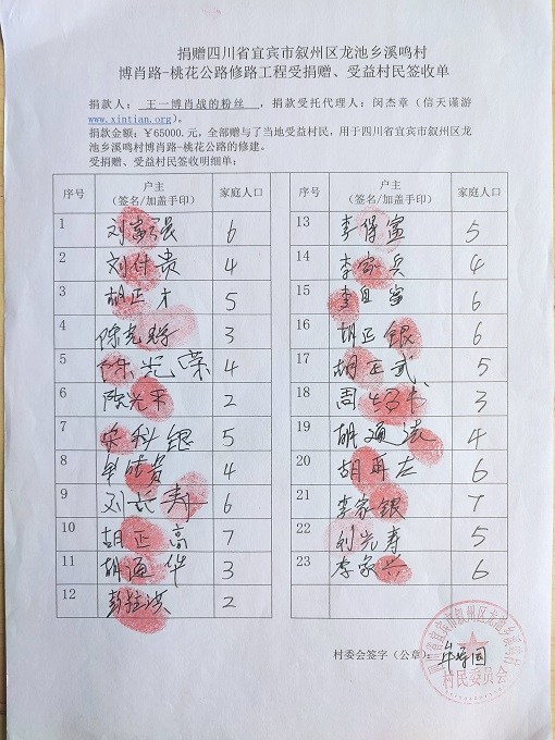 受益村民签字单