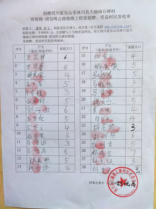 受益村民签字单