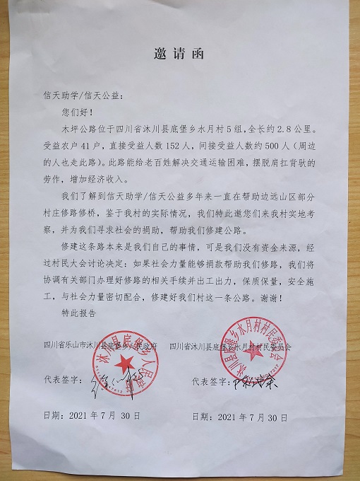 (5)修路预算分好几部分,有挖掘机、涵管、炸药爆破(山崖需要爆破)或者岩石破碎、堡坎、村民义务工、征地等。修路,捐款方不全包,捐款方出一大部分钱:挖掘费用、部分山崖爆破(如有的话)或破碎等。村民出义务工、涵管、征地费、或部分破碎费用,村民小额集资。