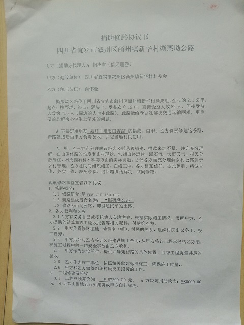 捐助修路协议书