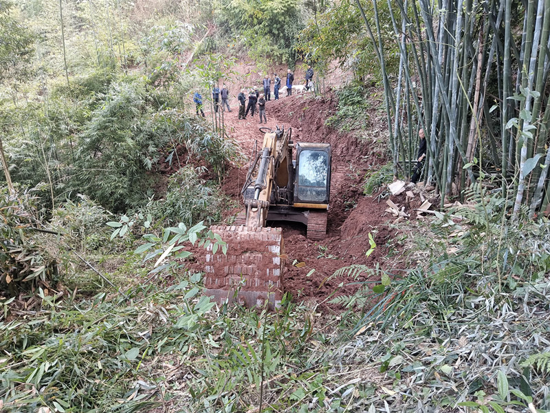 勘察路线,计划把这里的羊肠小道扩宽修建成能跑四轮车的乡间土质公路。
