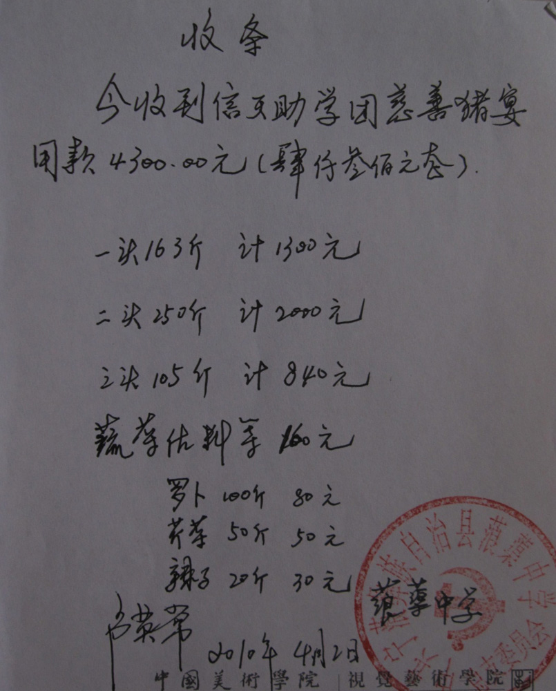 2)2010年3月底,已筹集到16头猪款,信天于3月底把15头猪款计24000元汇给当地负责人浦理智老师,他也是我们一对一助学的当地总负责人。