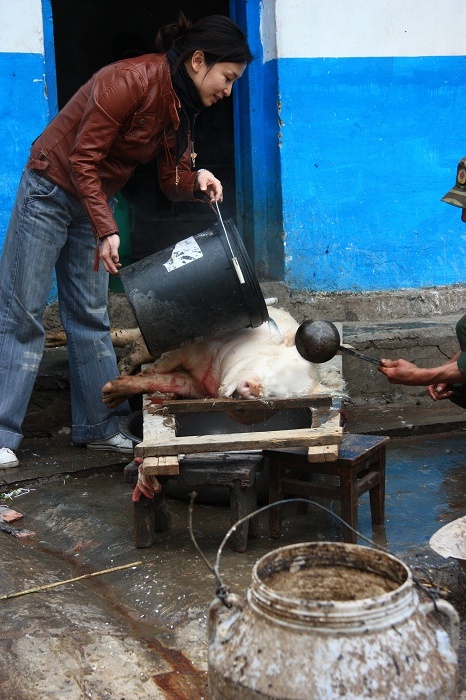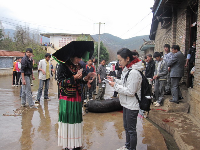 3)我们派出的义工三月MM、小蕾MM前往宁蒗,统一从浦理智老师处领取猪款,分赴各学校举办杀猪晏。三月和小蕾都曾是宁蒗山区的义教老师。
