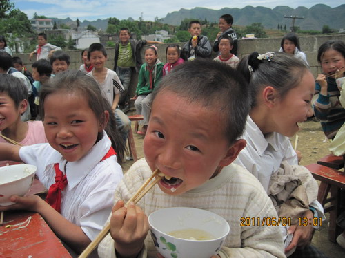 我们用朋友们购买的猪(2010年12月24日-2011年5月30日),举办了2011年六一节慈善宴会,宴请了云南、四川、贵州贫困山区185所学校约3.6万名师生吃了一顿肉,现把活动内容发在这里,谢谢大家的爱心!