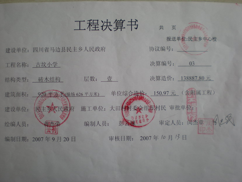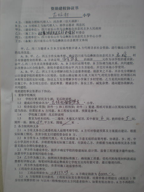 三、《资助建校协议书》及附件《图纸》和《工程预算单 》