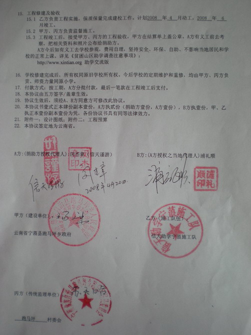 二、《资助建校协议书》及附件《图纸》和《工程预算单 》