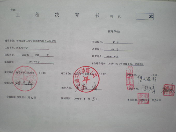 修建小学预算(二教)硝水河小学
