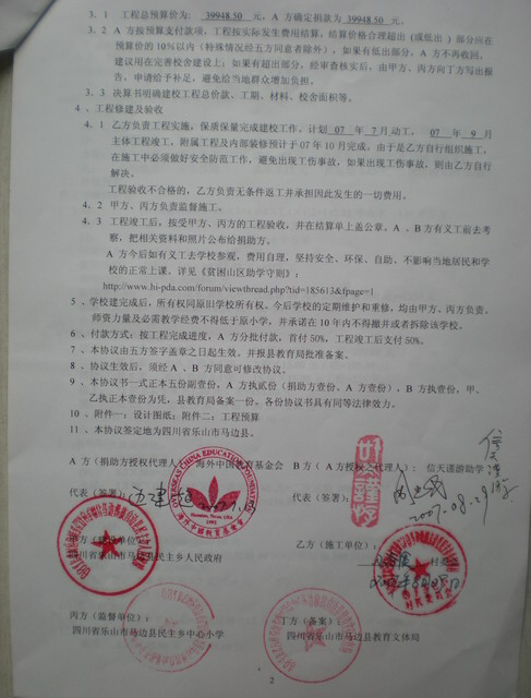 二、《资助建校协议书》