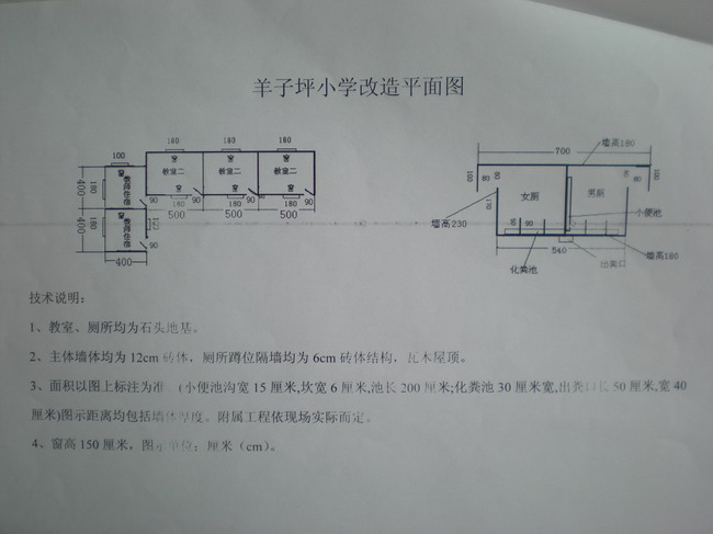 (2)教师宿舍办公室:2间       规格:4米×4米