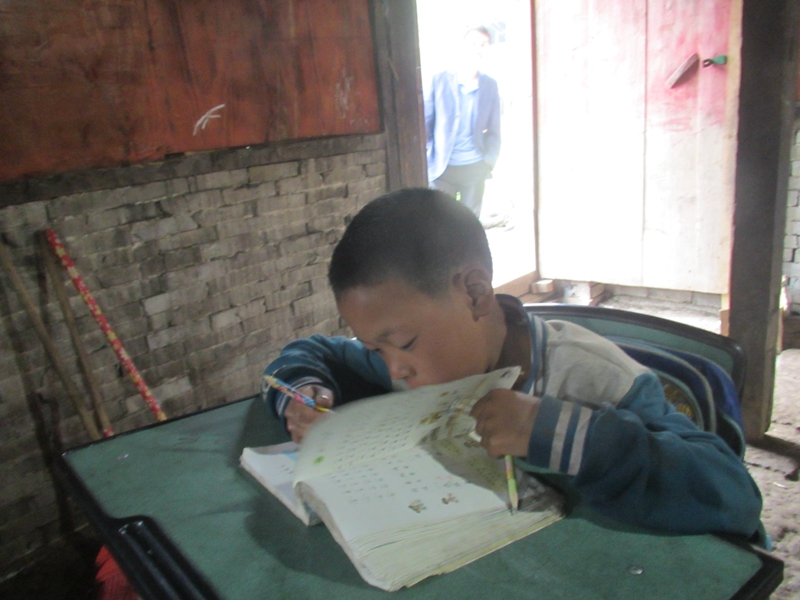 现在小学生在村民家上课。