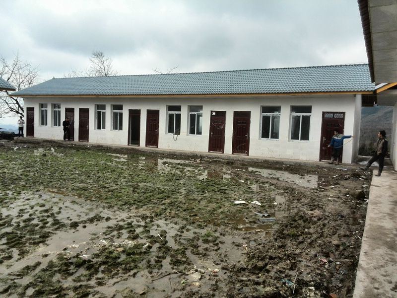 这是去年新修的教室,教室修好了,附属工程操场、围墙等都没有。