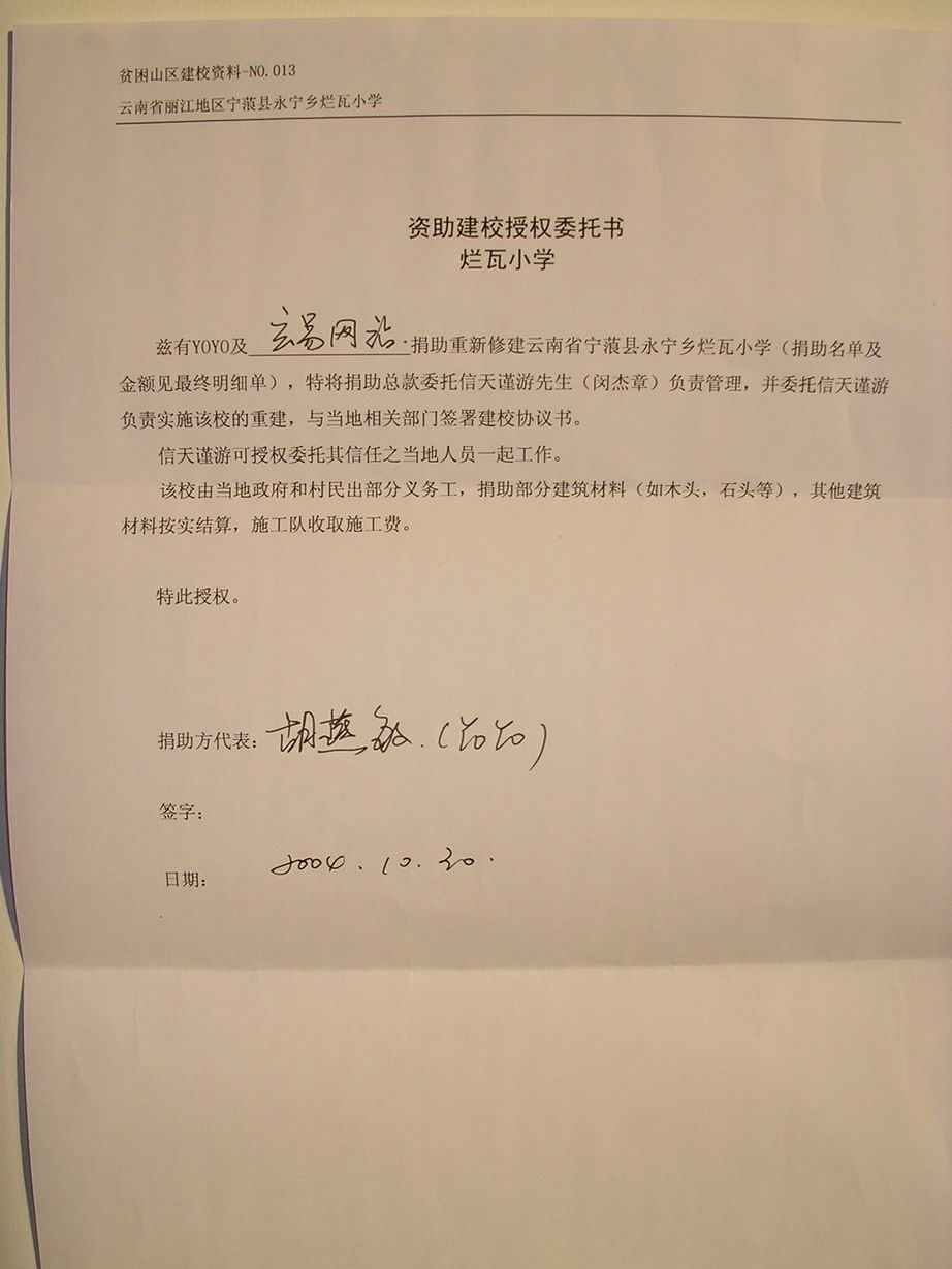 《资助建校授权委托书》