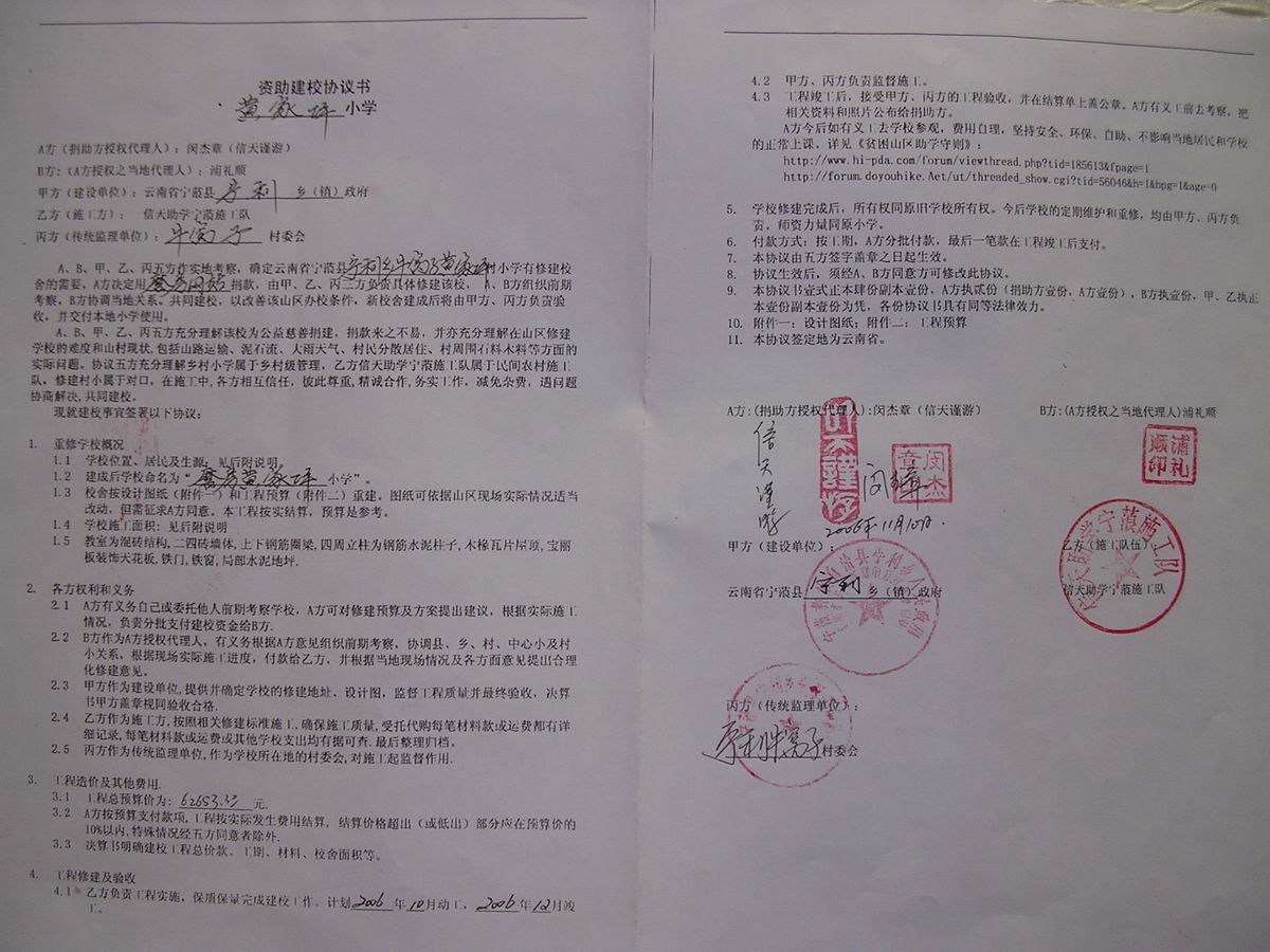 二、《资助建校协议书》及附件《图纸》和《工程预算单 》