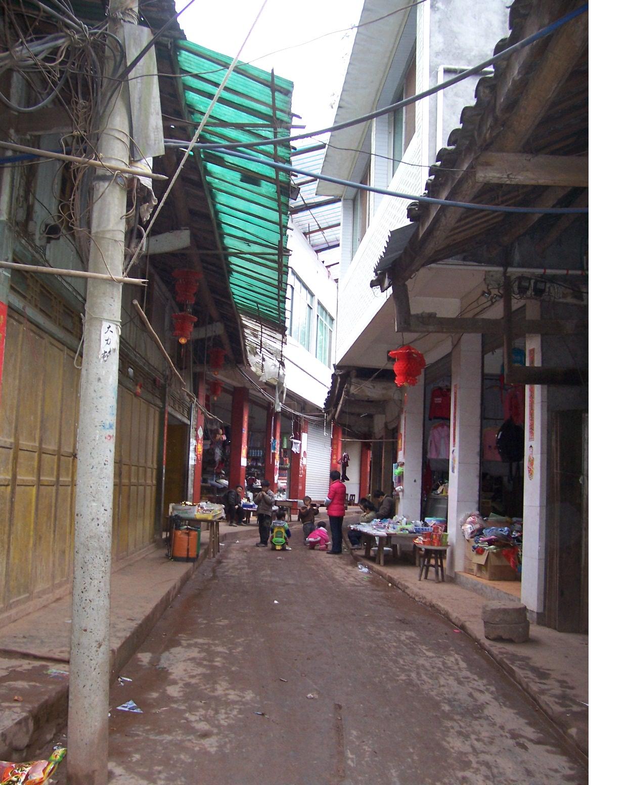 从图中可以看到,外来的车子只能通到乡街道边,进不了街道,过小桥才是街道……