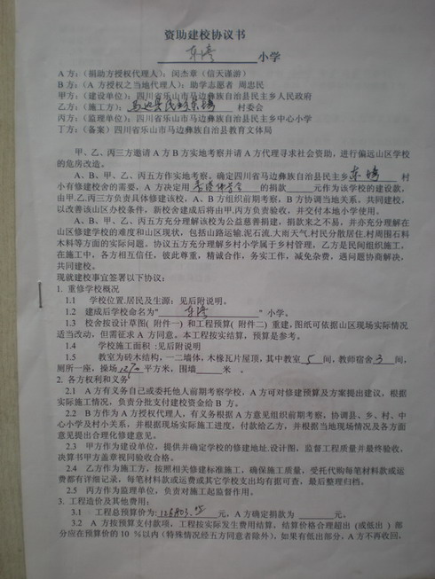 二、《资助建校协议书》及附件《图纸》和《工程预算单 》