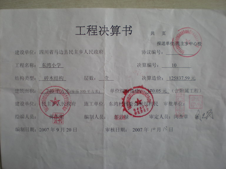 第59所:四川省马边县民主乡东湾小学修建总结