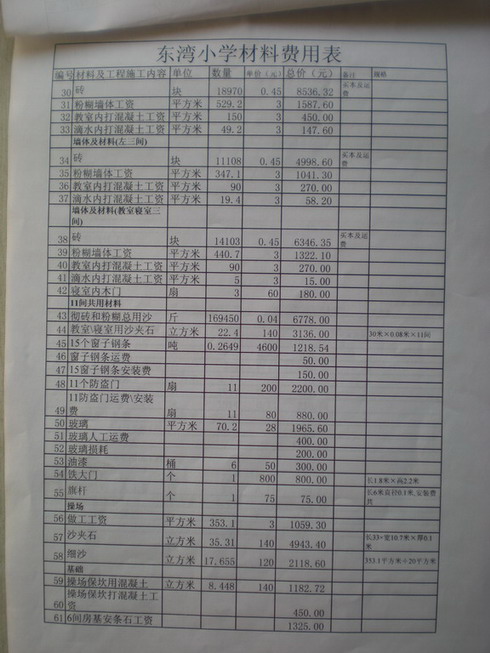 东湾小学修建共有以下几部分: