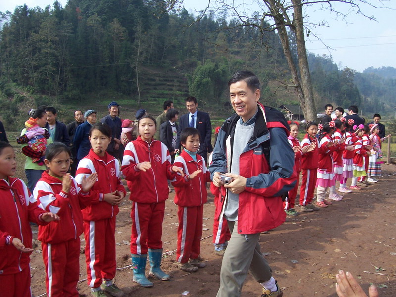 为修建东湾采华小学捐资的香港朋友不顾道路泥泞,路途遥远,特地从远道赶来……