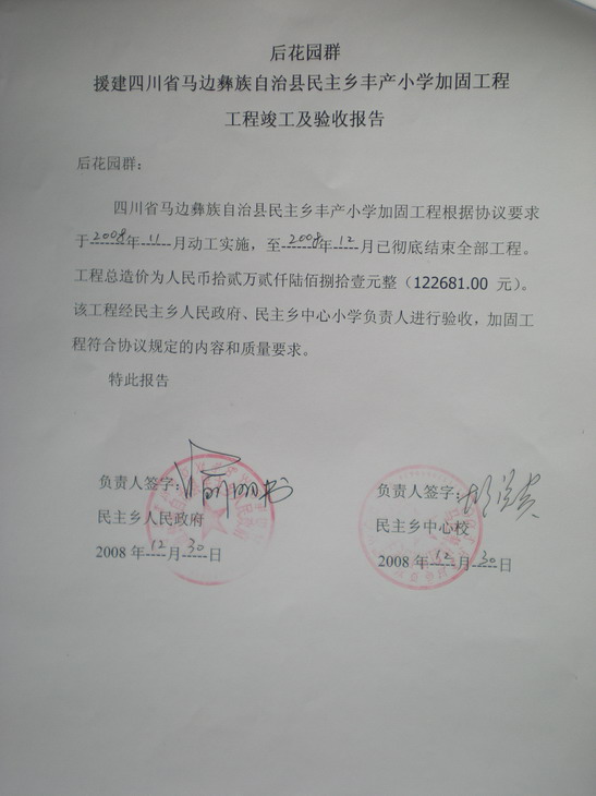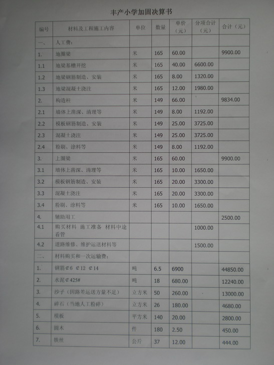 马边县民主乡丰产小学加固工程预算(后花园群捐助)