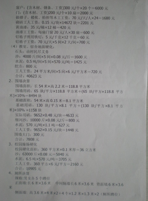 教室所需瓦:5000匹/间×5间×0.21元=5250元(含工资)