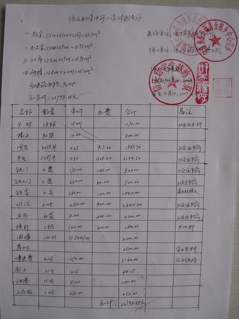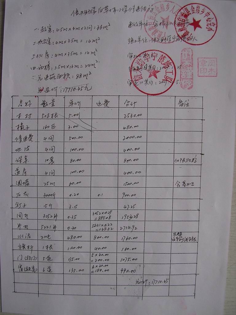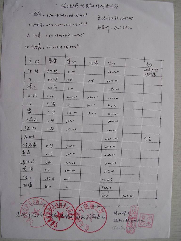 06年修建的马金子小学余款 2131元