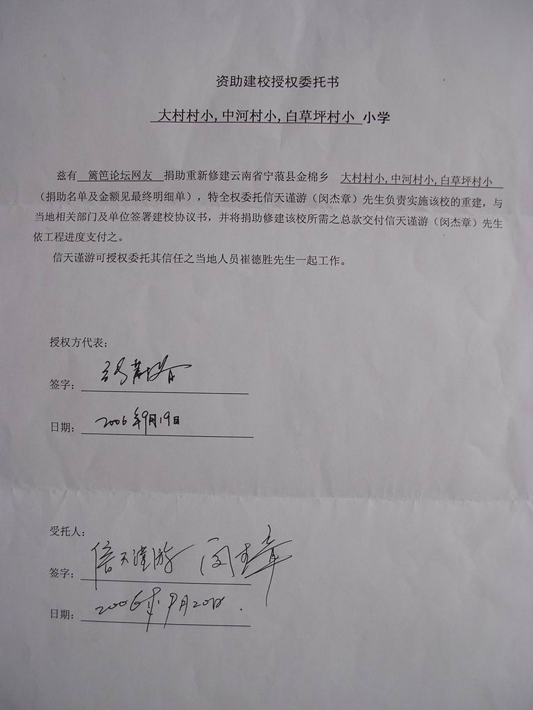 6.白草坪村小学捐助人:篱笆论坛网友
