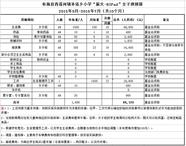 (女童班支出,相关的票据要等,整理后已发在帖子中)