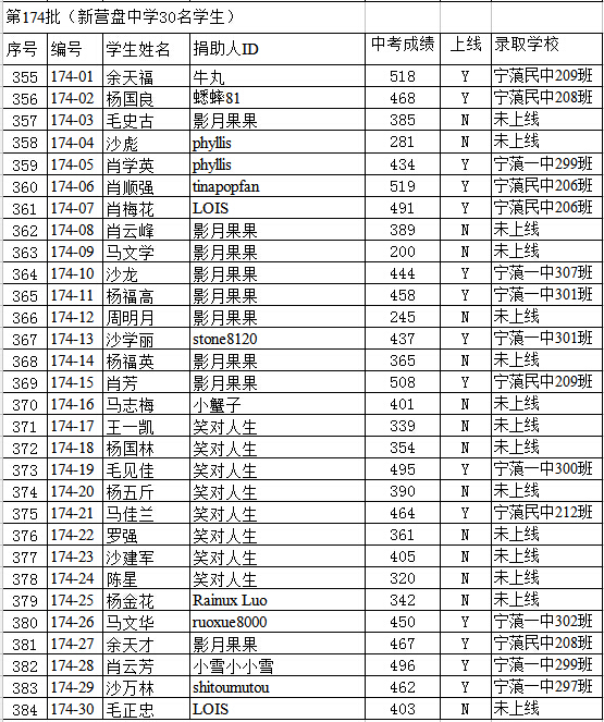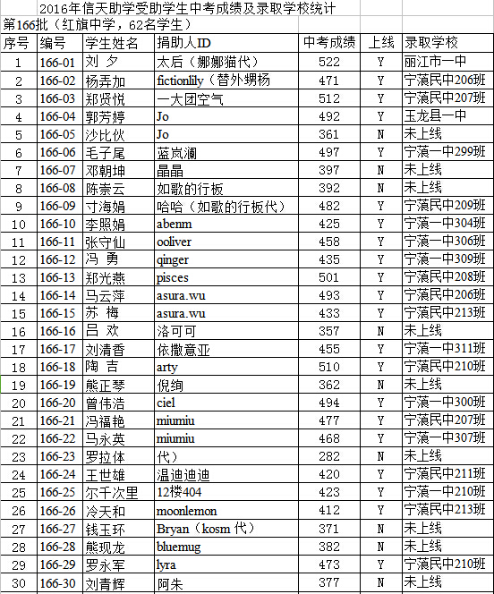 标题: 2016年信天助学初中生毕业中考录取学校情况