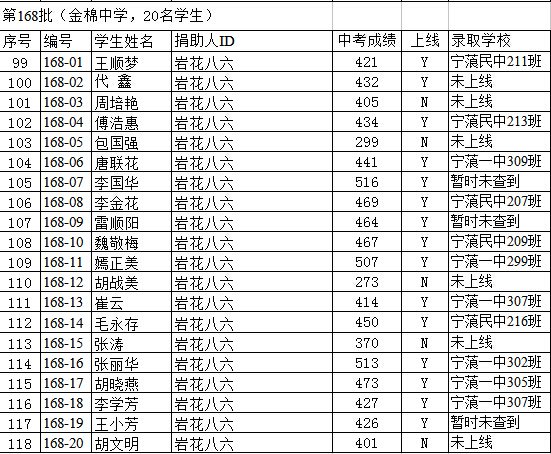 在资助过程中,有的受助生因辍学、转学等原因,资助款就转给另外一名贫困生,谢谢理解。
