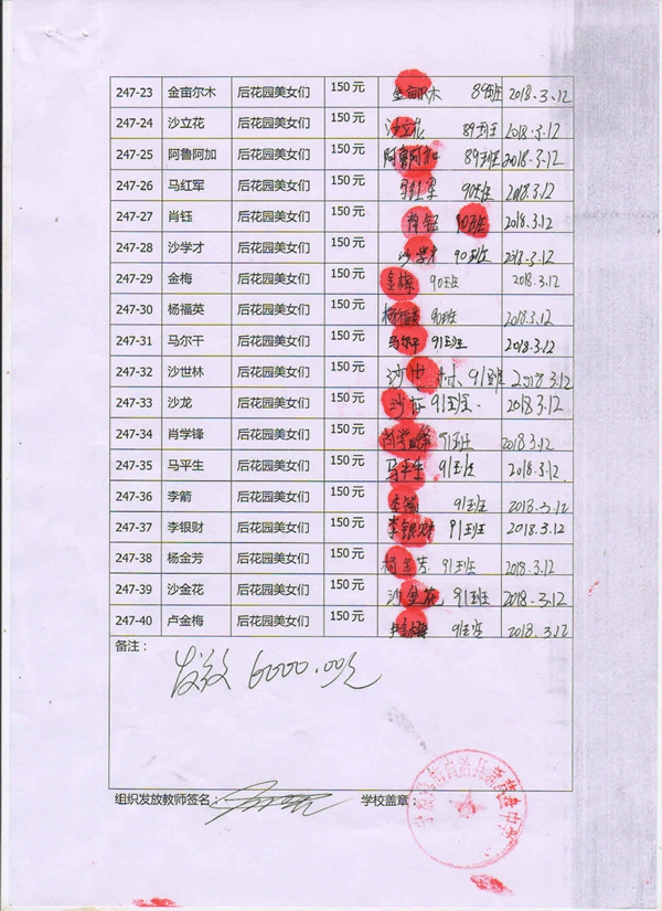 第247批新营盘中学(2018年3月到2018年8月)受助学生签收单