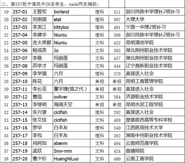 宁蒗县2021年信天助学高考成绩及录取院校情况