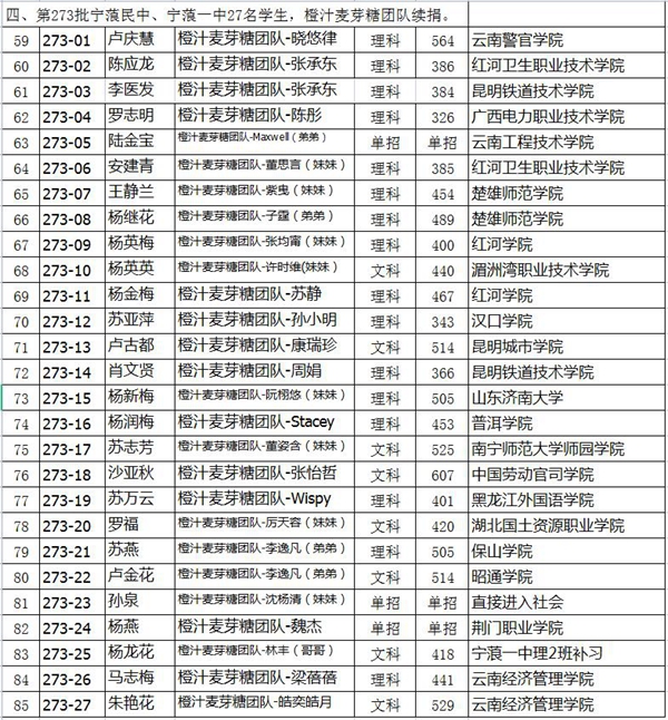 今年高中毕业的有256批、257批、258批、273批共4批,总人数85名学生参加高考。