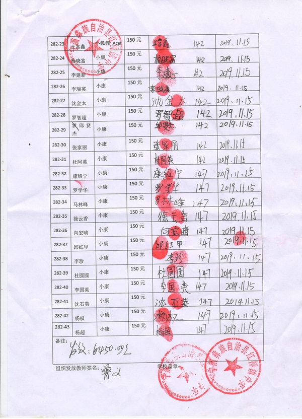 二、本批第282批43名学生由nada去年补捐23名(282-01至282-23),nada小康:20名(282-24至282-43);